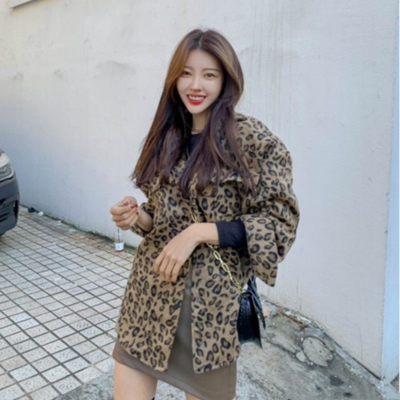 Autumn New Style Women's Woolen Shirt And Leopard Print Jacket
