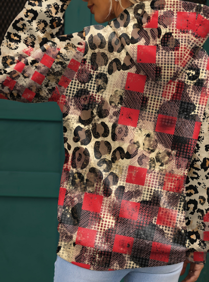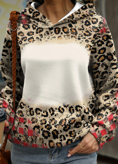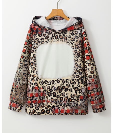 Brown Leopard Plaid Bleached Print Kangaroo Pocket Hoodie