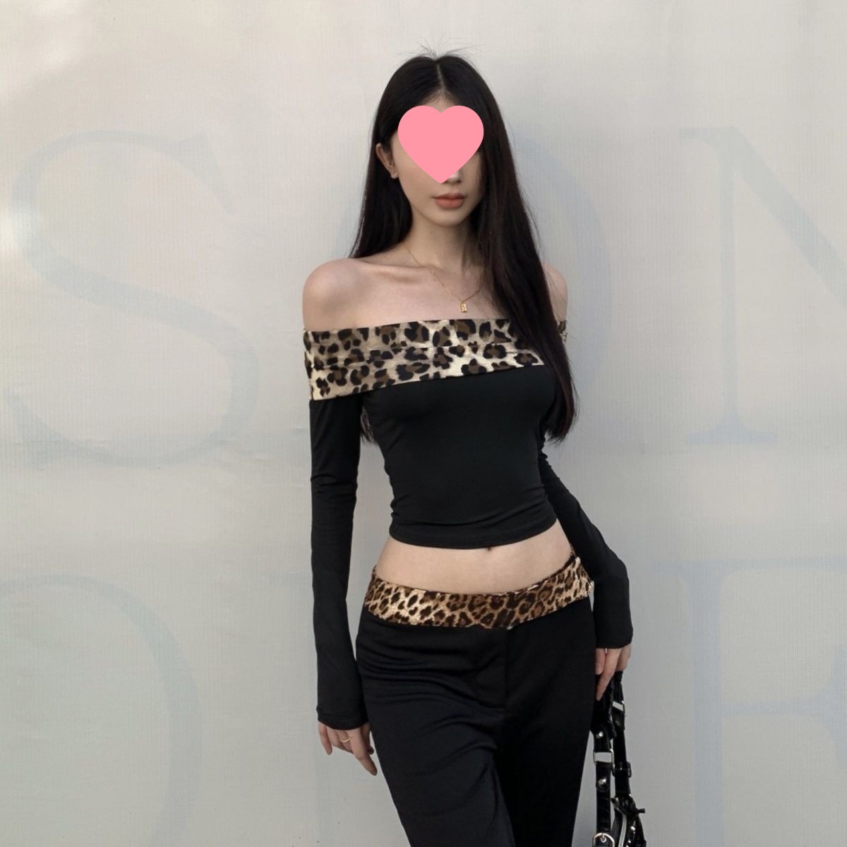 Off-shoulder Leopard Splicing Long Sleeve Autumn And Winter American Hot Girl Suit