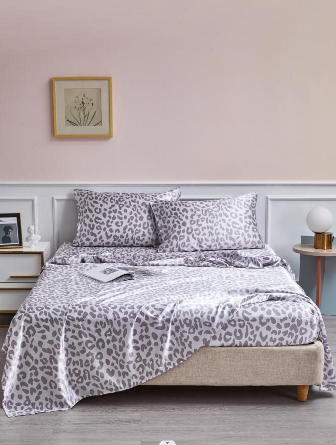 Satin Artificial Silk Printing Bed Sheet Fitted Sheet Pillowcase Digital Printing Silver Leopard Four-piece Set